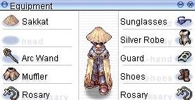 Equip podzielony jest na kilka rodzajów przedmiotów: Upper Head Gear[górna część głowy], Middle Head Gear[środkowa cześć głowy], Lower Head Gear[dolna część głowy], Armor[zbroja], Right Hand[prawa ręka-broń], Left Hand[lewa ręka-broń lub tarcza], Robe[płaszcz], Shoes[buty],